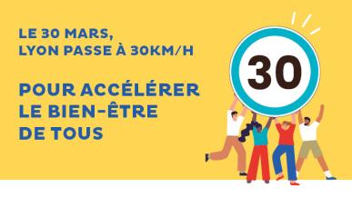 A partir du 30 mars 2022, la vitesse maximale autorisée sera limitée à 30 km/h dans la quasi-totalité de la ville de Lyon.