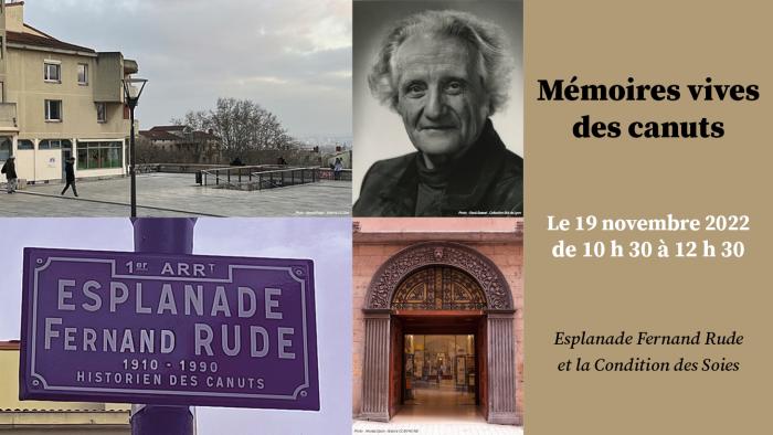 - 10 h 30 : hommage à Fernand Rude (1910-1990), historien des mouvements ouvriers lyonnais, sur l’esplanade qui porte aujourd’hui son nom (ex-esplanade de la Grande Côte)