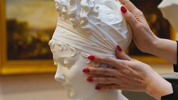 La visite se déroule en duo : à tour de rôle, les yeux bandés, chaque participant explore les œuvres du bout des doigts, en se laissant guider par le toucher.