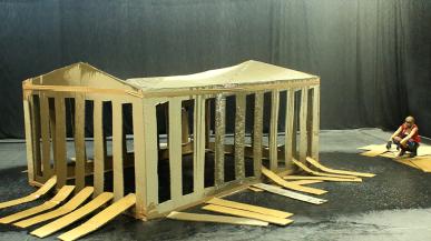 L’artiste protéiforme Phia Ménard s’inspire du Parthénon athénien et construit, seule en scène, une maison protectrice pour l'Europe.