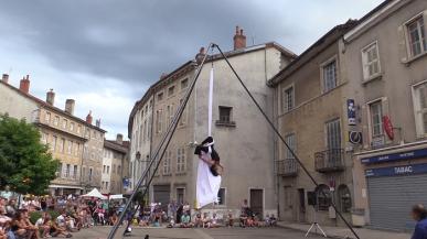Une performance acrobatique suspendue dans les airs où jouent le corps et la musique, la matière et le vide.