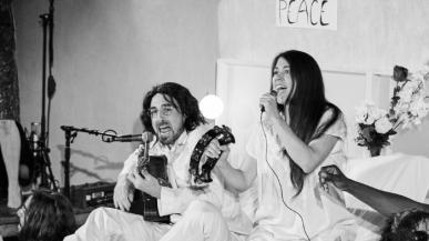 Un spectacle musical joyeux et engagé. Cinq comédiens et comédiennes rejouent le fameux "Bed-in for peace" de Montréal.