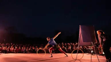 Spectacle de jonglage abstrait avec un caractère ironique.