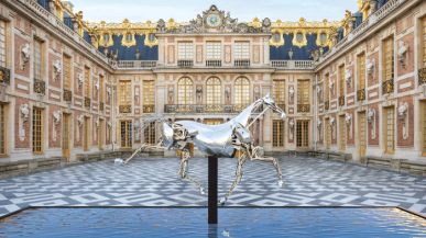 Zeus, le cheval métallique de la cérémonie d'ouverture des J.O, s'expose à l'hôtel de ville de Lyon.